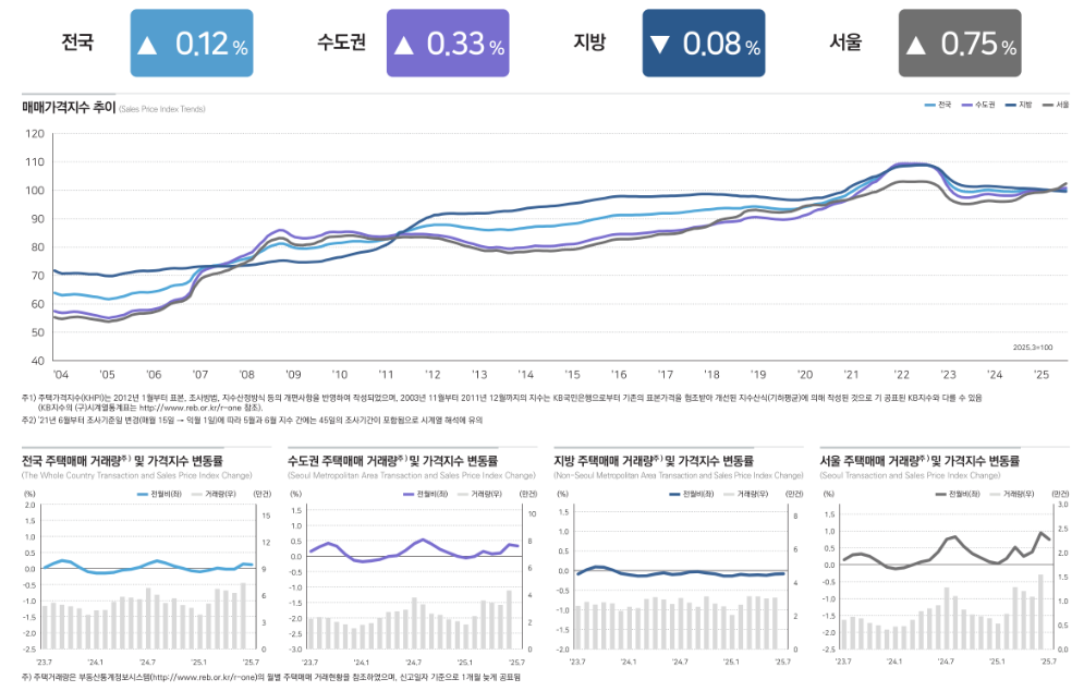 | [8월 4주차 주간 아파트 가격동향] 서울은 둔화, 지방은 여전히 약세… 전세는 소폭 회복 (2) | 2025.09.02 |