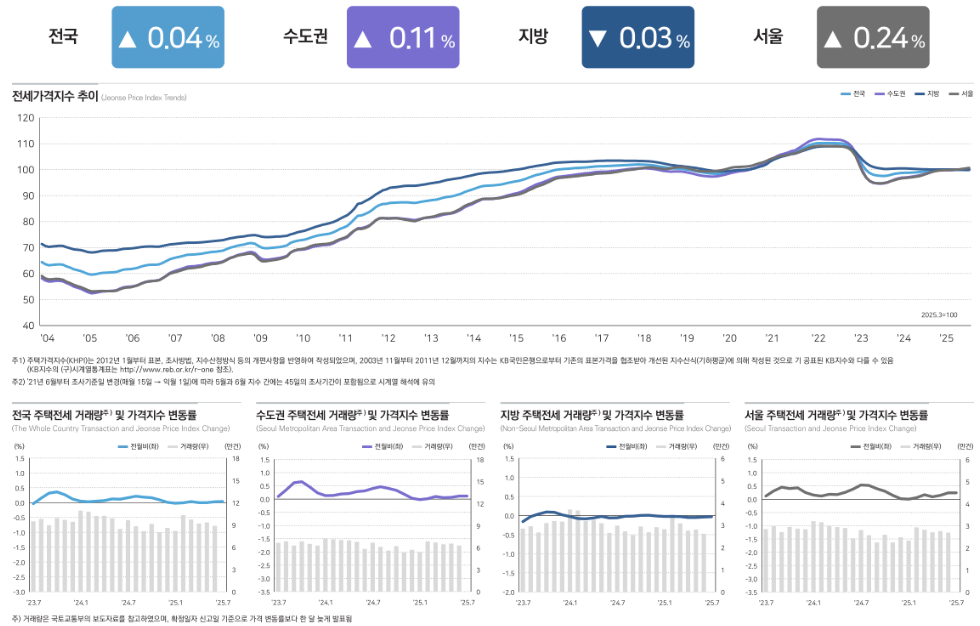 2️⃣ 전세시장: 수도권은 반등, 지방은 불안정
