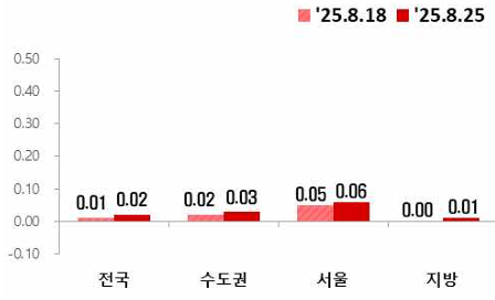 1️⃣ 매매 동향 – 전국 보합, 서울은 0.08% 상승