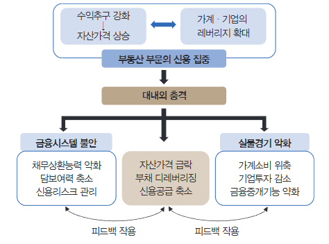 부동산 시장과 신용시장이 과도하게 연결된 지금의 상황에서는 부동산 가격이 급락할 경우 금융시스템 전반에 연쇄 충격이 발생할 수 있습니다. 담보가치 하락으로 금융기관의 대출 회수 가능성이 낮아지고, 기업과 가계의 부채 디레버리징(빚 줄이기) 압력이 커지면서 소비와 투자가 동반 위축될 수 있습니다.