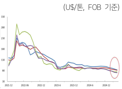 2025년 아연 벤치마크 정제 수수료(TC), U$80/톤으로 작년 대비 절반 이하로 하락
