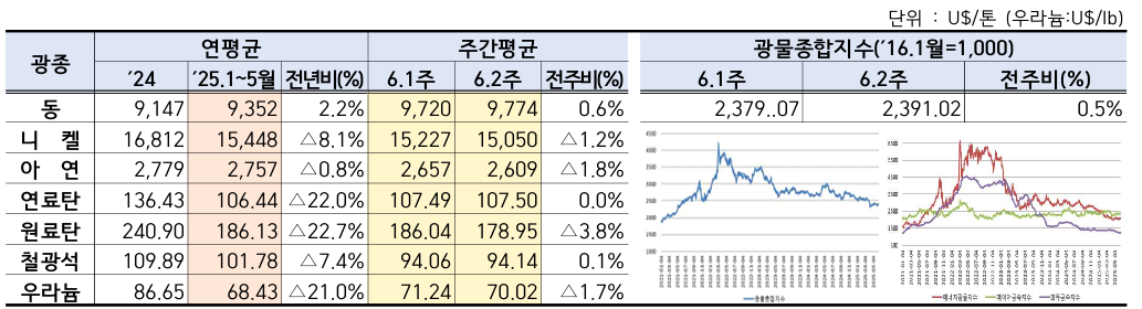 국제 광물시장은 언제나 예측이 어렵습니다. 정치, 경제, 날씨, 그리고 한 국가의 생산 차질이 전 세계 공급망과 가격에 영향을 주기 때문입니다. 이번 2025년 6월 2주차(6월 9일~13일) 보고서는 그런 복합적인 움직임이 고스란히 담긴 한 주였습니다.